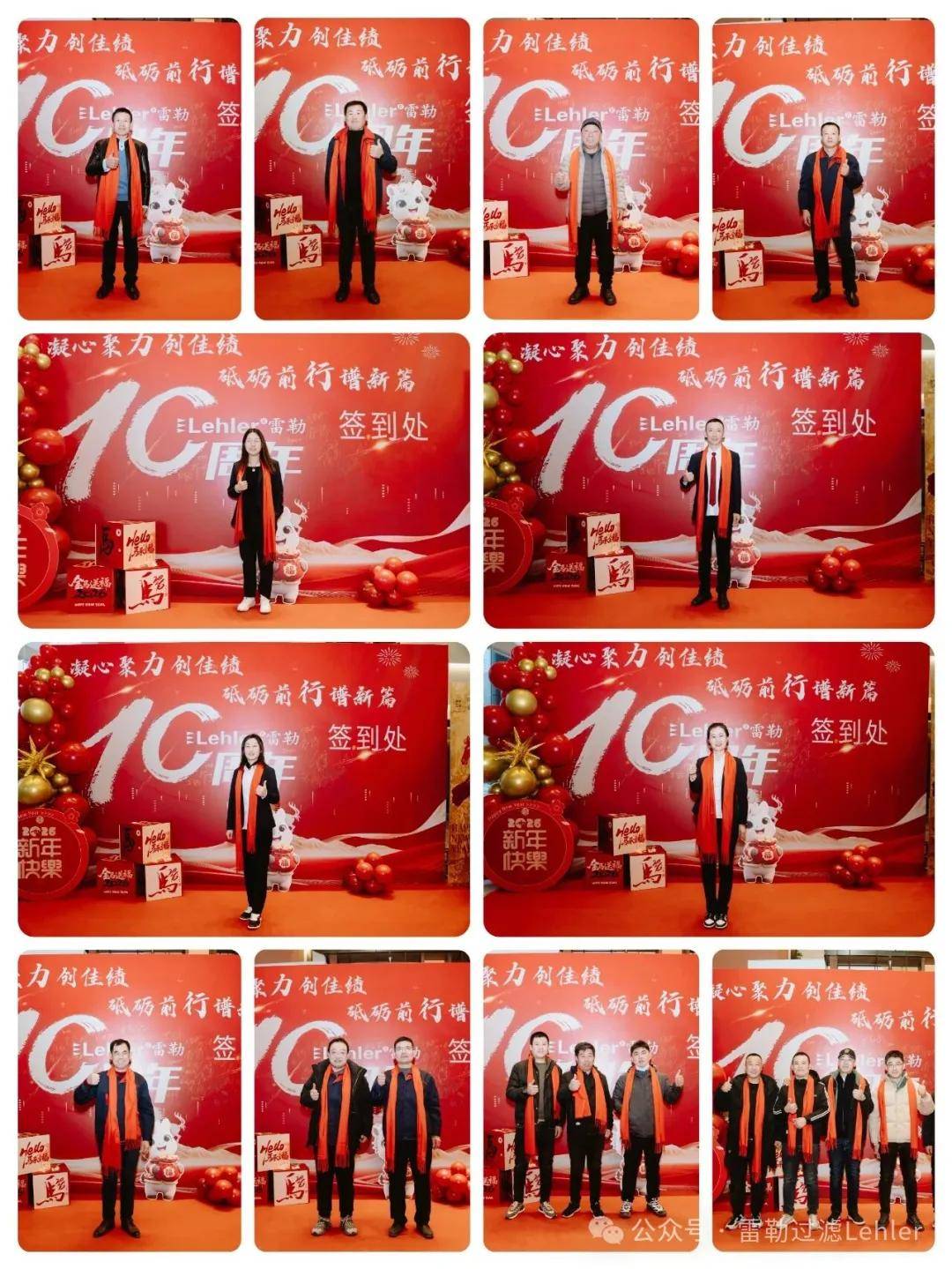公司领导并肩执刀,切开这份承载十年耕耘的甜蜜,现场掌声阵阵。切糕仪式后,全体同仁登台合影,一张张笑脸定格成雷勒最珍贵的画面。