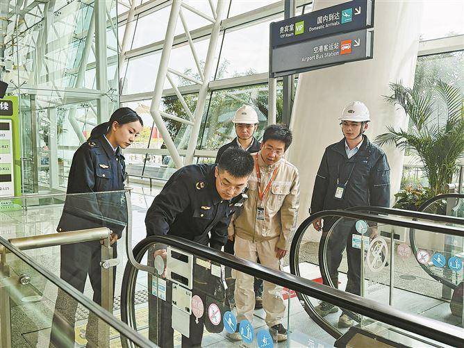 在湖里区,市场监管部门重点对高崎机场、国际邮轮中心、地铁站点及商超的特种设备开展专项检查,重点核查自动扶梯、电梯的运行维护情况,督促使用单位与维保公司落实安全责任,完善“日管控、周排查、月调度”机制,储备关键配件、排查隐患,制定保障预案,加强巡检频次。
